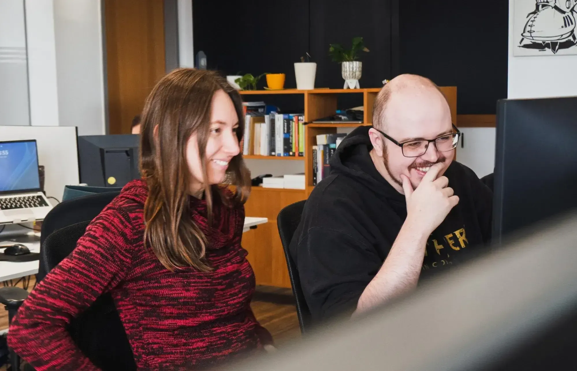 Besonders spannend für Philipps künftiges Aufgabenfeld: Sandra und Christopher zeigten und erklären, wie wir bei automatisierten und händischen Softwaretests bisher vorgehen, welcher Technologie-Stack genutzt wird, wo wir hinwollen und was die nächsten To-dos in diesem Bereich sind. Hier war Philipp nicht nur Empfänger von Wissen, sondern war direkt eingeladen zur „Ideenwälzerei“.