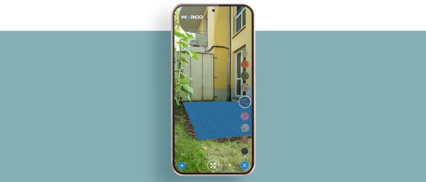 Mit Augmented Reality verlegt WARCO Bodenplatten virtuell, um die Idee und Vorstellung des neuen Bodens digital auf dem Smartphone zu visualisieren.